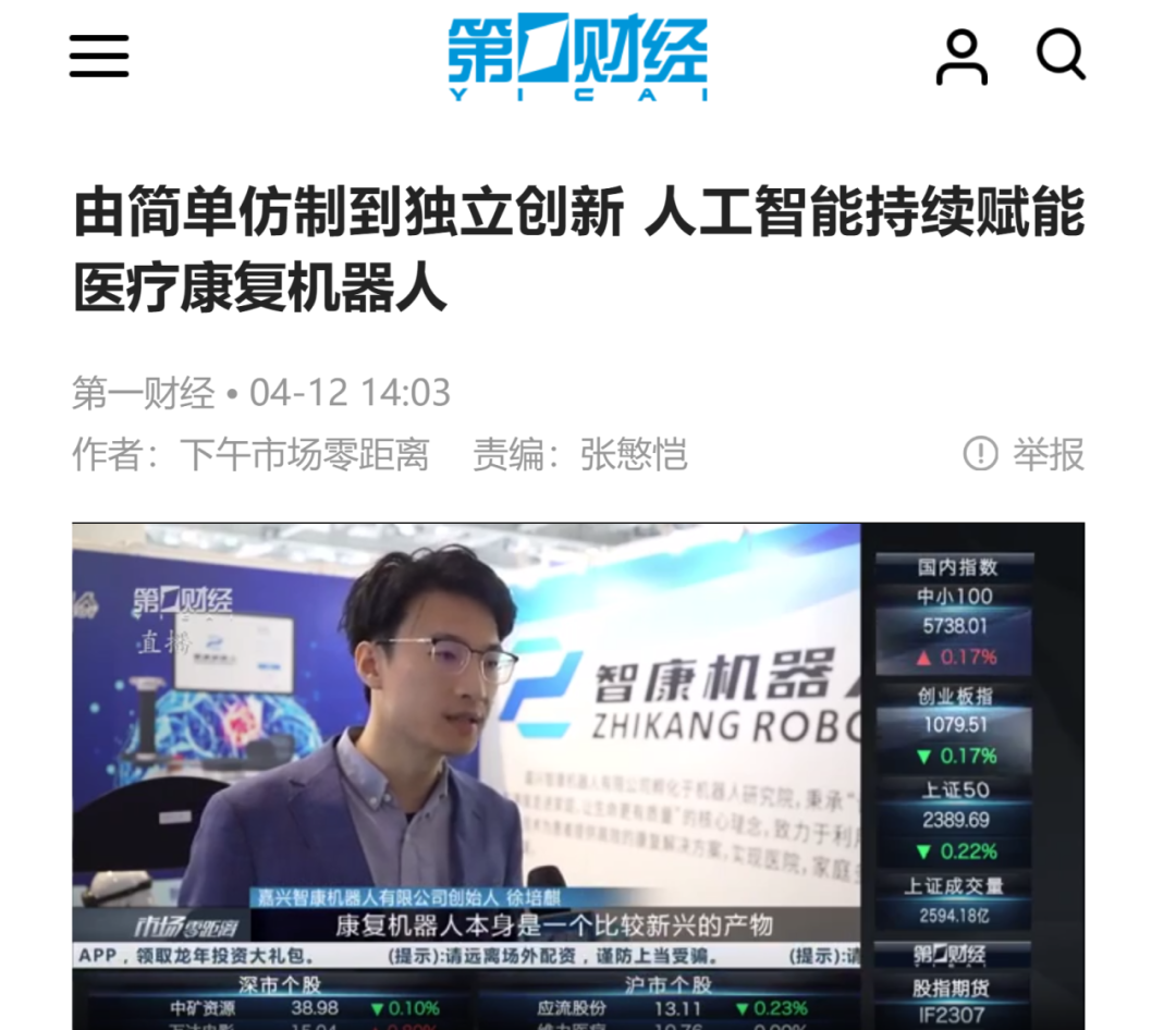 同时,上海电视台的专业财经媒体第一财经对智康机器人创始人徐培麒先生进行了采访,共同见证了这一科技盛事。