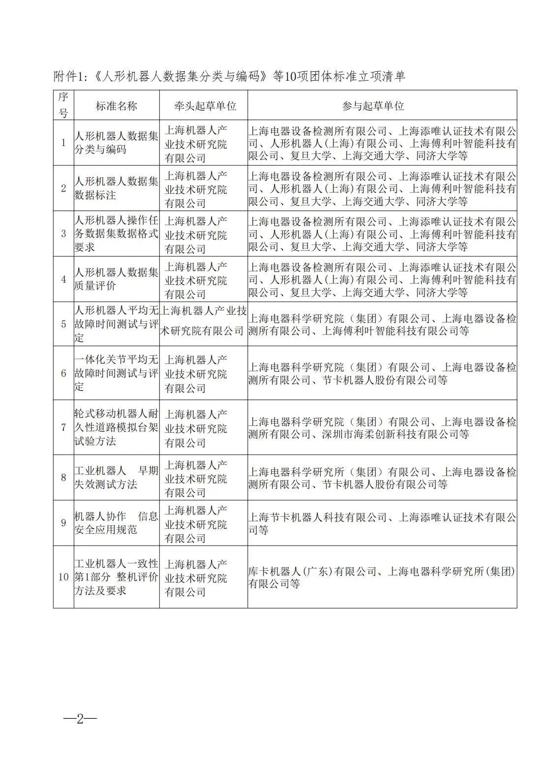 2024年11月12日上智协标〔2024〕15号,上海市人工智能行业协会下达了关于《人形机器人平均无故障时间测试与评定》等10项团体标准立项通知。