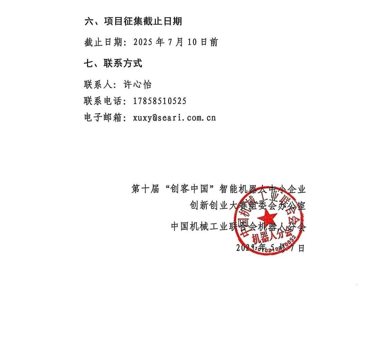 关于开展第十届“创客中国”智能机器人中小企业创新创业大赛项目征集工作的通知