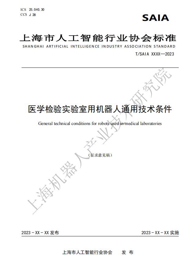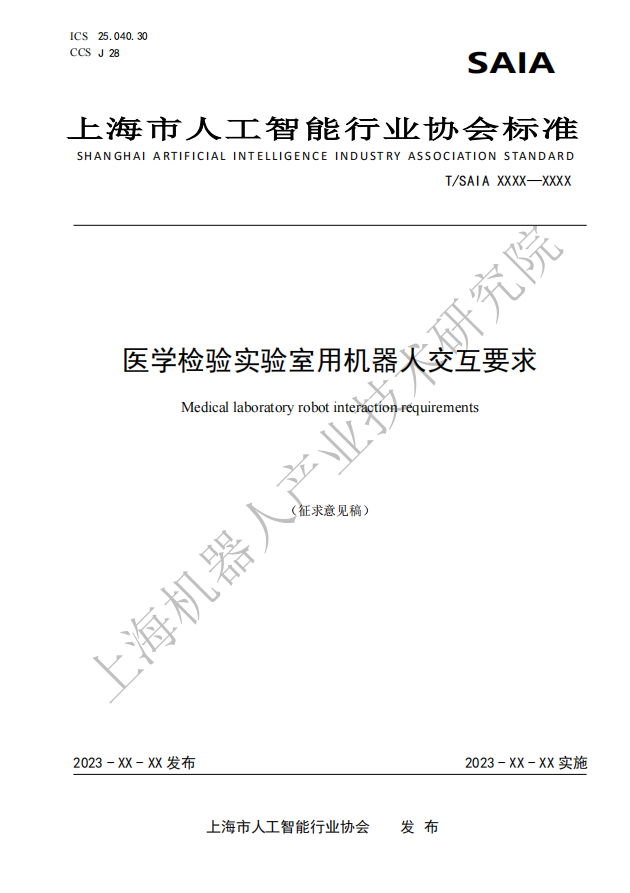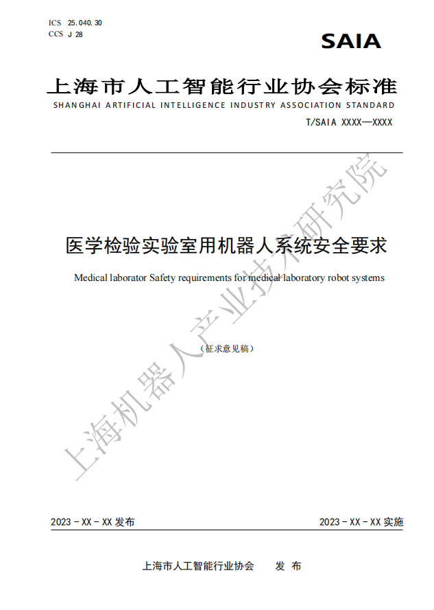 由上海市人工智能行业协会归口,JIUYOU.COM九游(中国)机器人有限公司官网有限公司作为主要起草单位研制的四份标准:《医学检验实验室用机器人通用技术条件》、《医学检验实验室用机器人系统安全要求》、《医学检验实验室用机器人交互要求》、《医学检验实验室用机器人使用环境要求》现公开征求意见。