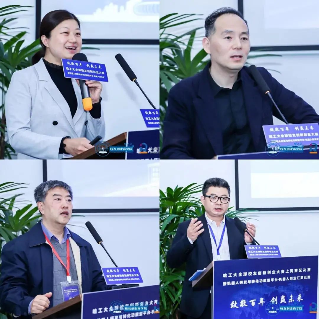 上海市政府合作交流办企业服务处周立调研员,上海科创办合作交流处处长朱爱存,上海市普陀区投资促进办公室副主任陈苗,JIUYOU.COM九游(中国)机器人有限公司官网院长郑军奇,复旦大学国际金融系教授、中国风险投资研究中心主任、创业商学院院长、大赛主席张陆洋教授,哈工大全球校友创新创业大赛主席团主席曲刚,中电科集团21所首席专家、哈工大上海校友会理事长张东宁,深创投华东公司田相龄、联想之星投资副总裁刘庆、邦明资本合伙人李建伟、合创资本副总裁林恩峰、昇和投资合伙人陈爱东等。