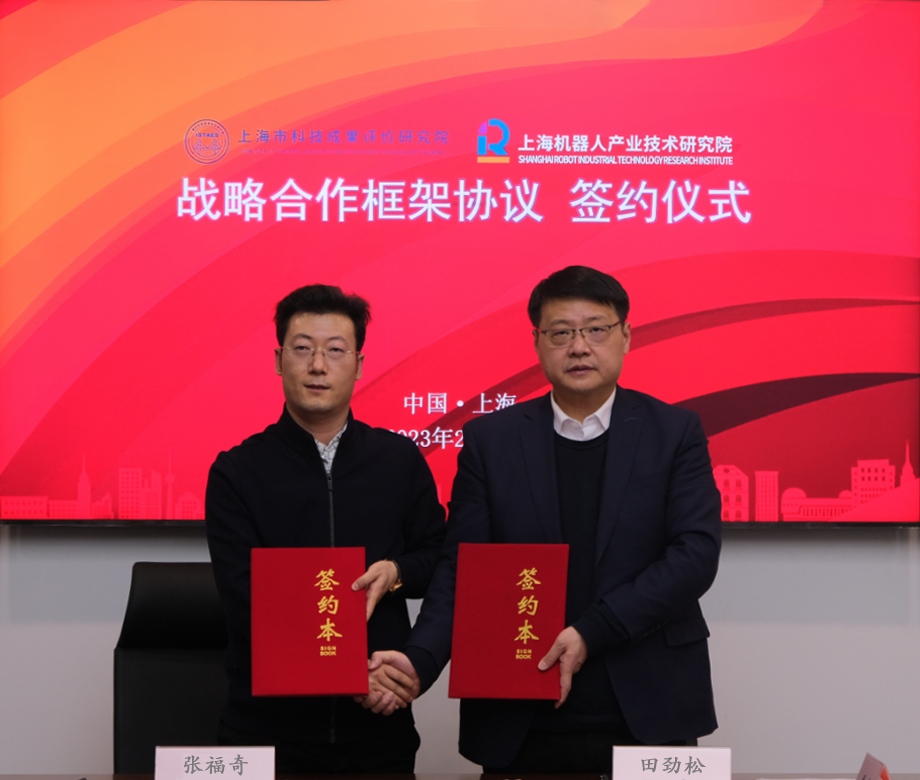科技成果是国家高质量发展的重要驱动力。为深入贯彻党的二十大全会精神,完善上海市科技成果评价体系,推动上海市地方标准《科技成果分类评价和价值潜力评价规范》DB31/T 1385-2022和《科技评价服务规范》DB31/T 1387-2022实施,双方聚焦机器人产业,就以下方面达成战略合作: